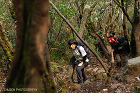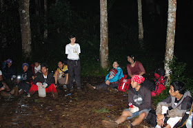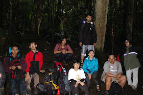 Hari mulai gelap, sekitar pukul 17:30 masih ditengah hutan. Kita bertemu dengan rombongan pendaki dari Tangerang. Disitu kita istirahat sejenak sambil menunggu yang masih tertinggal.