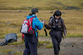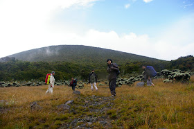 Setelah istirahat cukup dan rombongan berkumpul, kita melanjutkan perjalanan. Posisi jalan semakin menanjak, rerumputan semakin rimbun dan posisi jalan agak susah yang mengharuskan kita untuk sering membuka jalan dan membuat pijakan kaki. Setelah kurang lebih berjalan 2 jam, akhirnya sampai tempat istirahat dimana kita akan menyiapkan santap siang serta memulihkan tenaga. Api unggun dari kayu telah dibakar agar ketika istirahat tidak terlalu dingin.