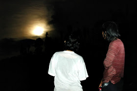 Bulan purnama dengan tersenyum dan wajah sumringah menyambut kedatangan kami. Walaupung langit disebelah barat dan utara petir petir saling beradu saling menabuh genderang, tetapi dari timur kita diterangi bulan purnama.Huaaaahhh… senang rasanya sudah melewati petualangan ini dengan tanpa halangan suatu apapun. Hujan bagi kita bukan suatu halangan, tapi adalah kawan perjalanan.